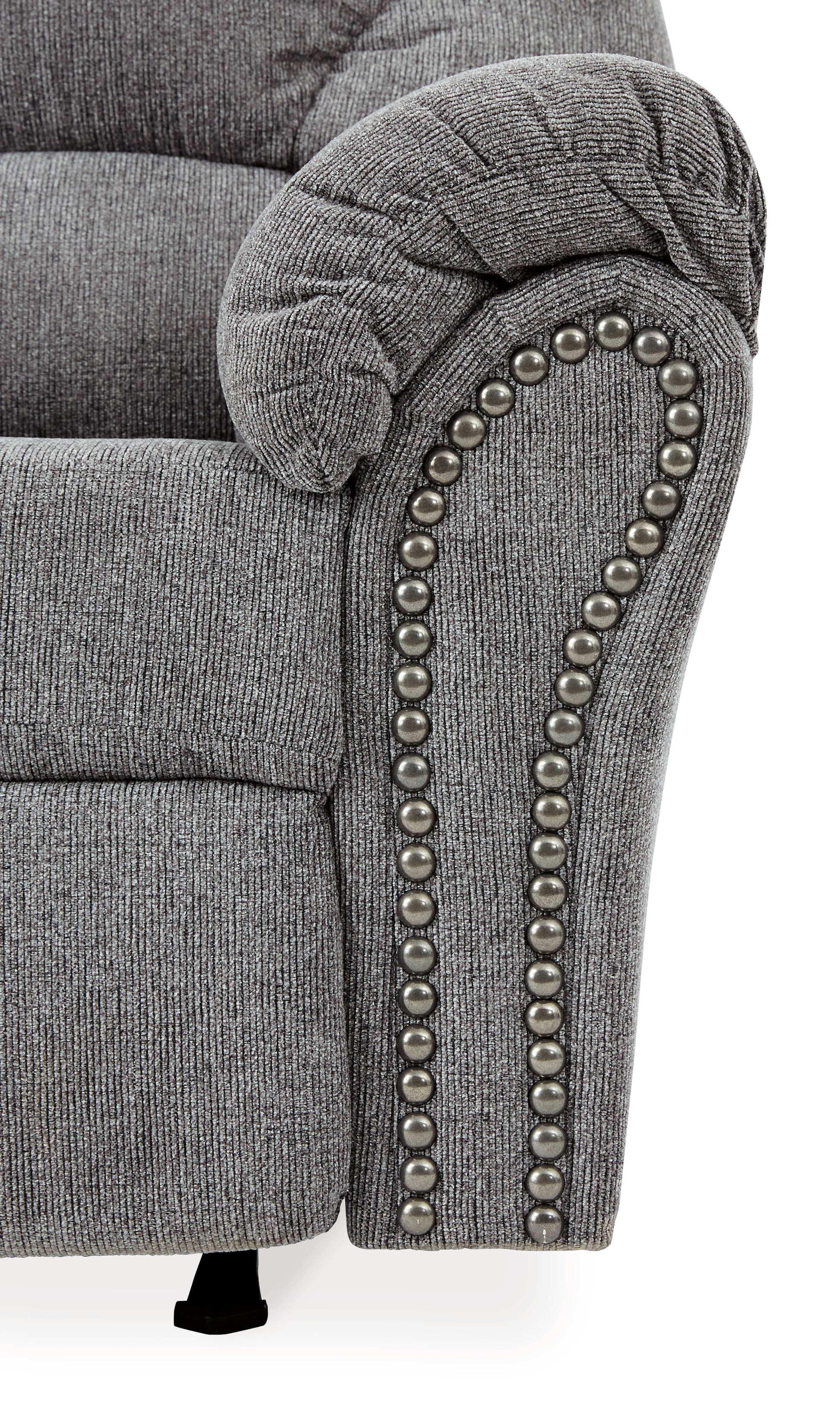 Why sacrifice comfort for style (or style for comfort) when you can have the best of both in this sofa in pewter gray. Elements include a chic divided-back design and pillow top wrapped armrests that make nodding off all too easy. Calling attention to the elegantly flared armrests—black nickel-tone nailhead trim for a punch of cool character.