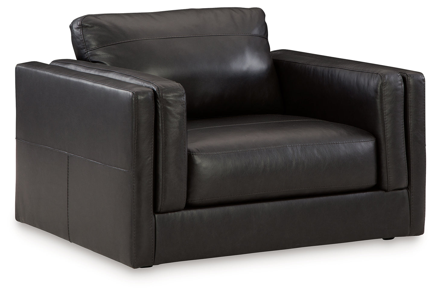 - 100% top grain leather covers the cushion top; skillfully matched faux leather covers the remaining areas