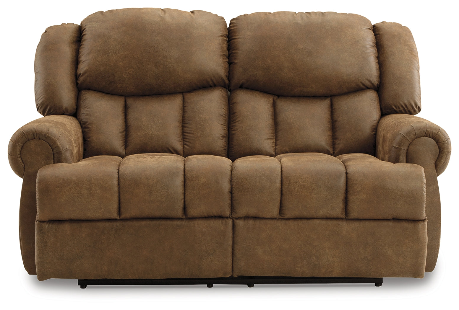 Expansive elegance. This power reclining sofa makes a sizable style statement. Its large scale enhances the luxe appearance, magnifying the beauty of richly warm brown faux leather. Polishing off the piece is one-touch power reclining, which adds a layer of function to this masterclass in form.