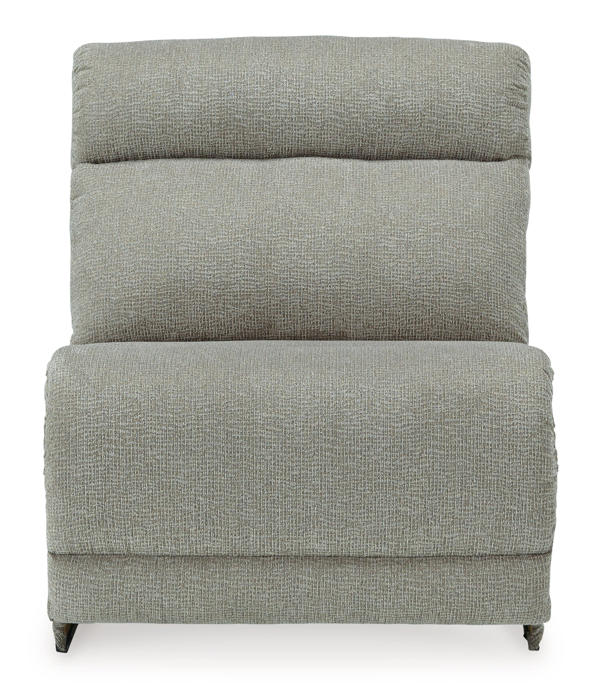 - Includes 7 pieces: left-arm facing power recliner, armless power recliner, console with storage, wedge, right-arm facing power reclining back chaise and 2 armless chairs