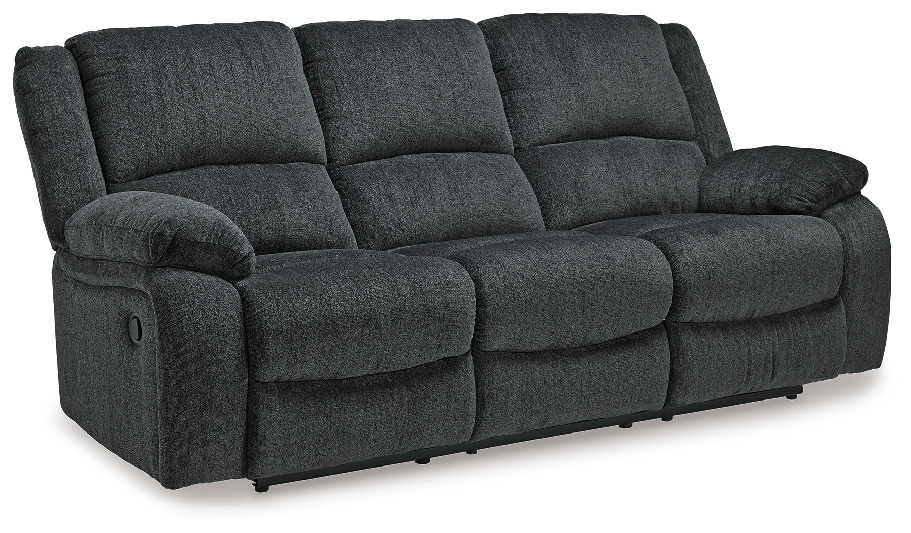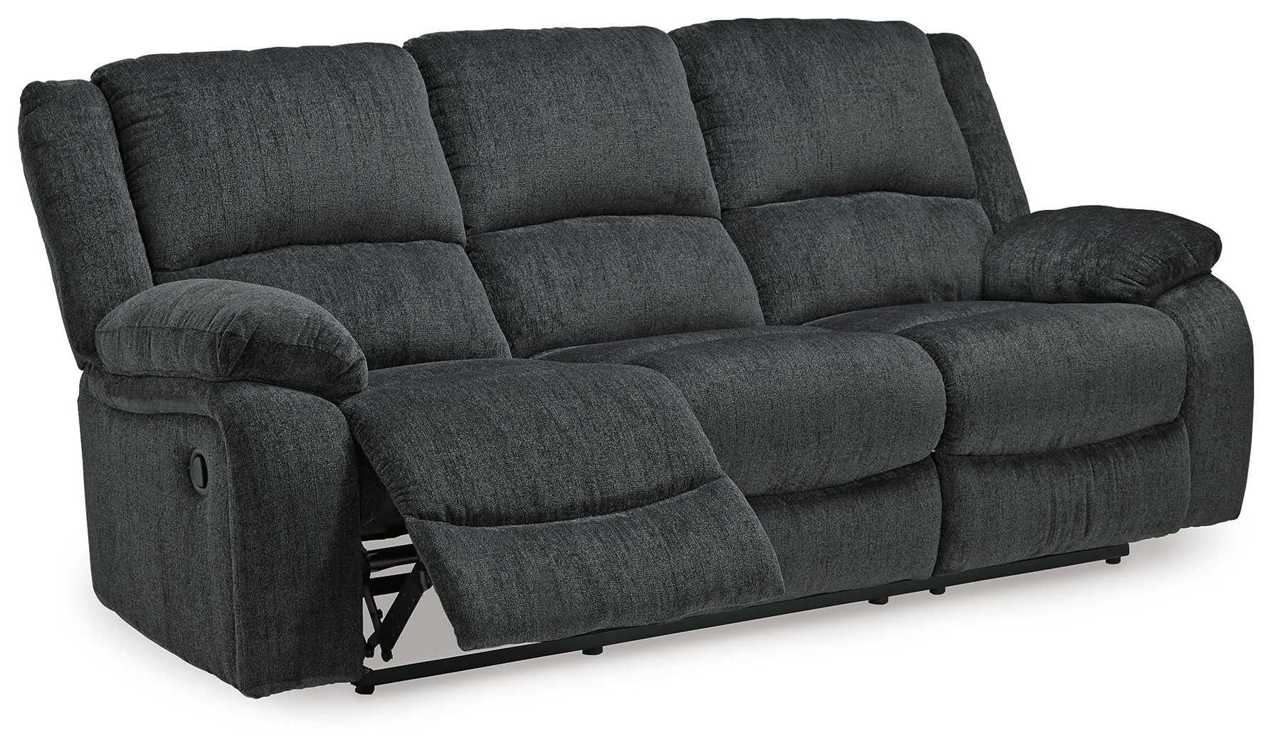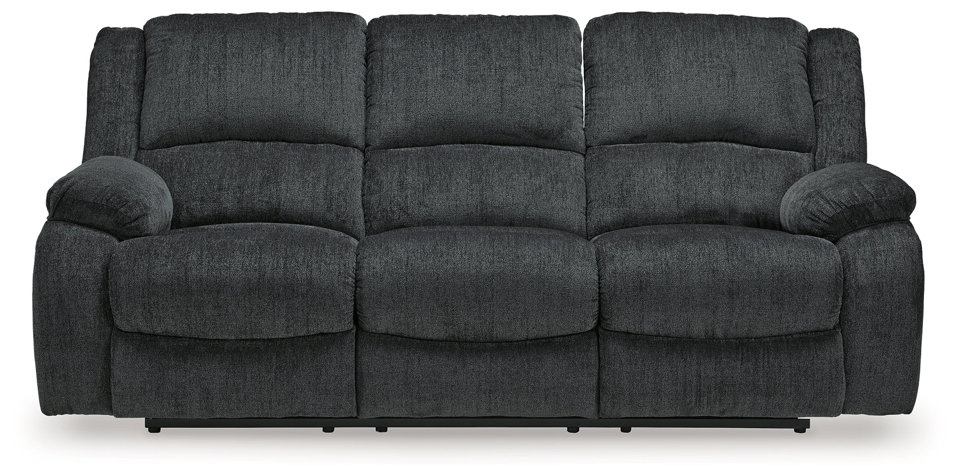 Built for luxury, this reclining sofa lets you kick back in reliable style. The thick, softly textured chenille upholstery provides a comfy surface on which to lounge. With bustle back construction and thickly cushioned armrests, this piece gives you the dependable support you need to unwind after a trying day.