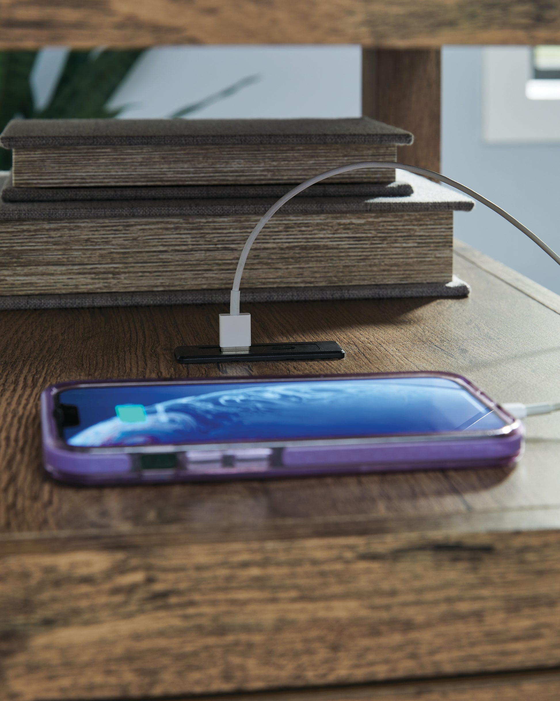 Embrace simply stylish sofa-side function with this chairside end table. Keep entertainment essentials like remotes, coasters and more close with the handy storage cabinet. Battery running low? Built-in USB ports keep easy charging at your fingertips. And with the table's replicated weathered gray finish, it has the versatility to pair with aesthetics from casual to farmhouse.