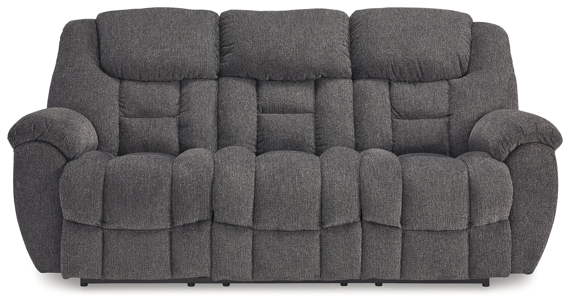 Sometimes seeing is believing. And you can rest assured that this reclining sofa is every bit as indulgent as it looks. Designed to put you in the lap of luxury, the generously scaled seating—wrapped in plush and practical Next-Gen Nuvella™ upholstery—sports pillow-wrapped armrests and curvaceously cushioned head-neck support for feel-good flair.