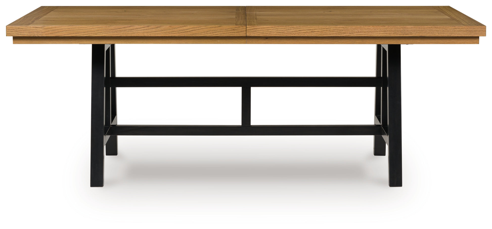 This dining extension table brings a rustic vibe to urban contemporary design. It’s a modern approach to natural beauty, pairing a natural oak finish with an aged black to create a chic two-tone look. With its stunningly simple color palette, this table seamlessly coordinates with your existing decor.