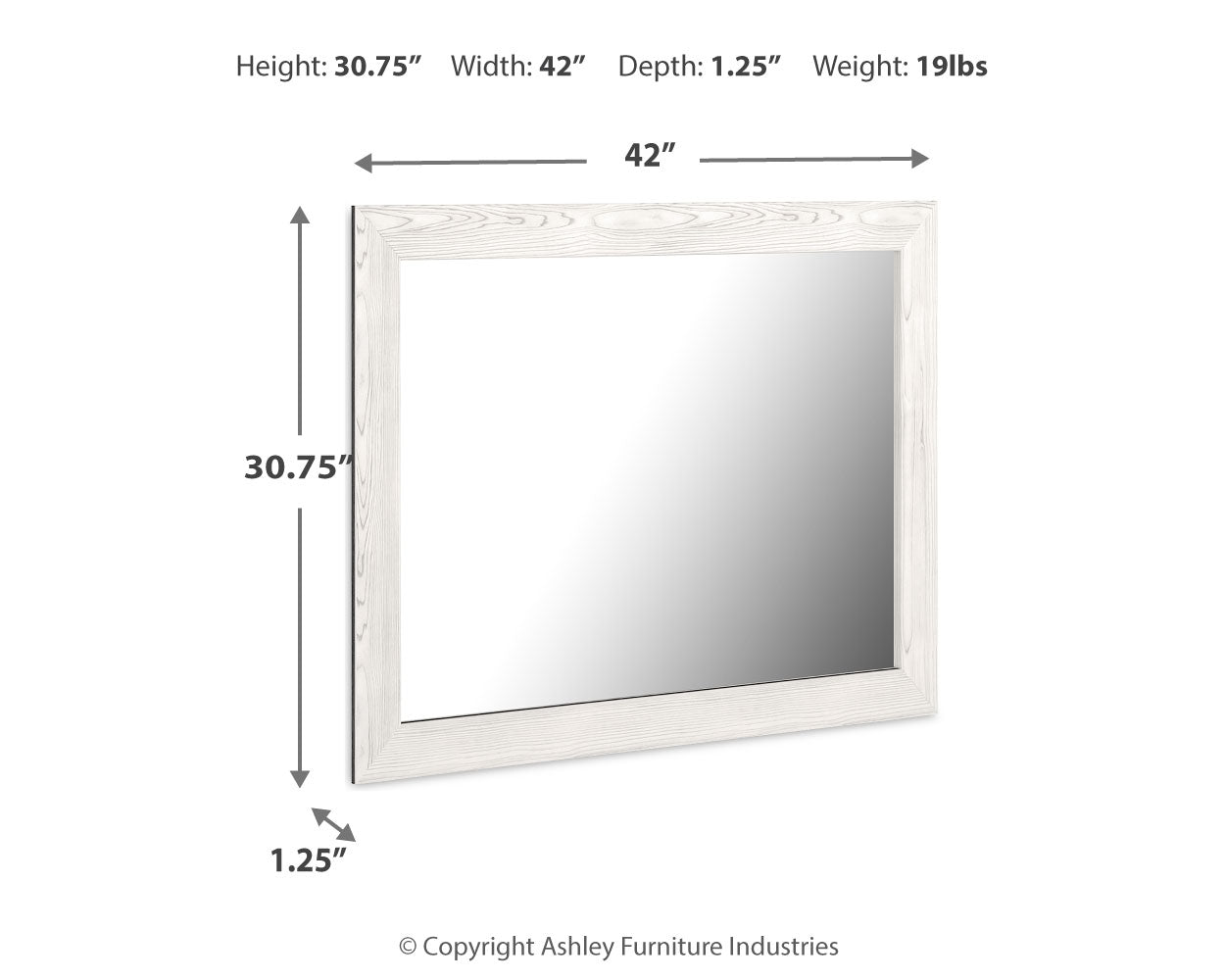 | Bedroom Mirror | 42" | 1" | 31" |