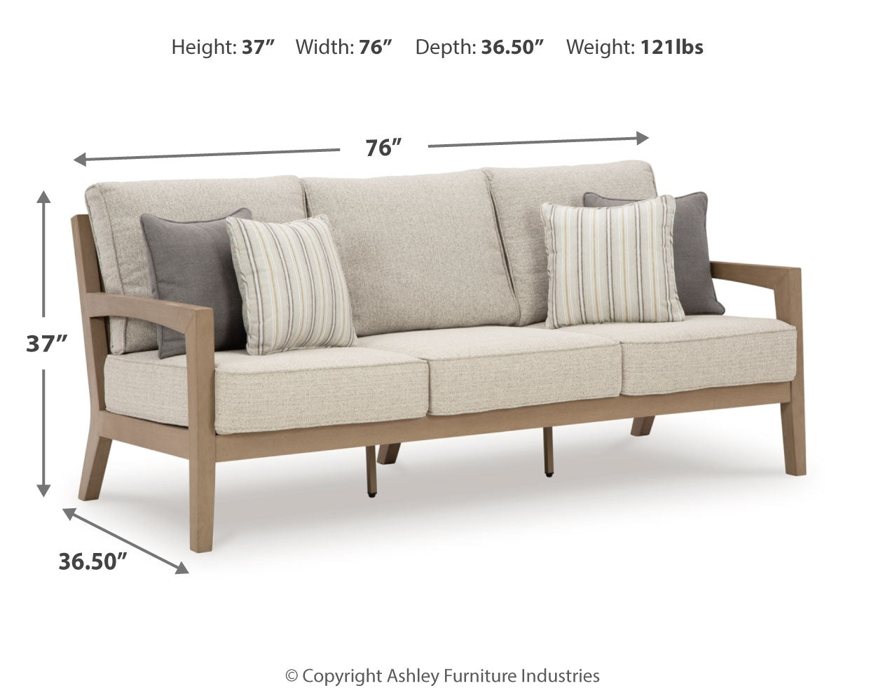 This coffee table is a beautiful addition to any outdoor living space. Effortless in its simplicity, this piece echoes your easygoing sensibilities. Combining durable, cutting-edge engineered materials, its Weatherwood construction in a blond wood color enhances the contemporary design. Pair this table with the matching sofa and chairs for a spectacular backyard or patio seating arrangement.