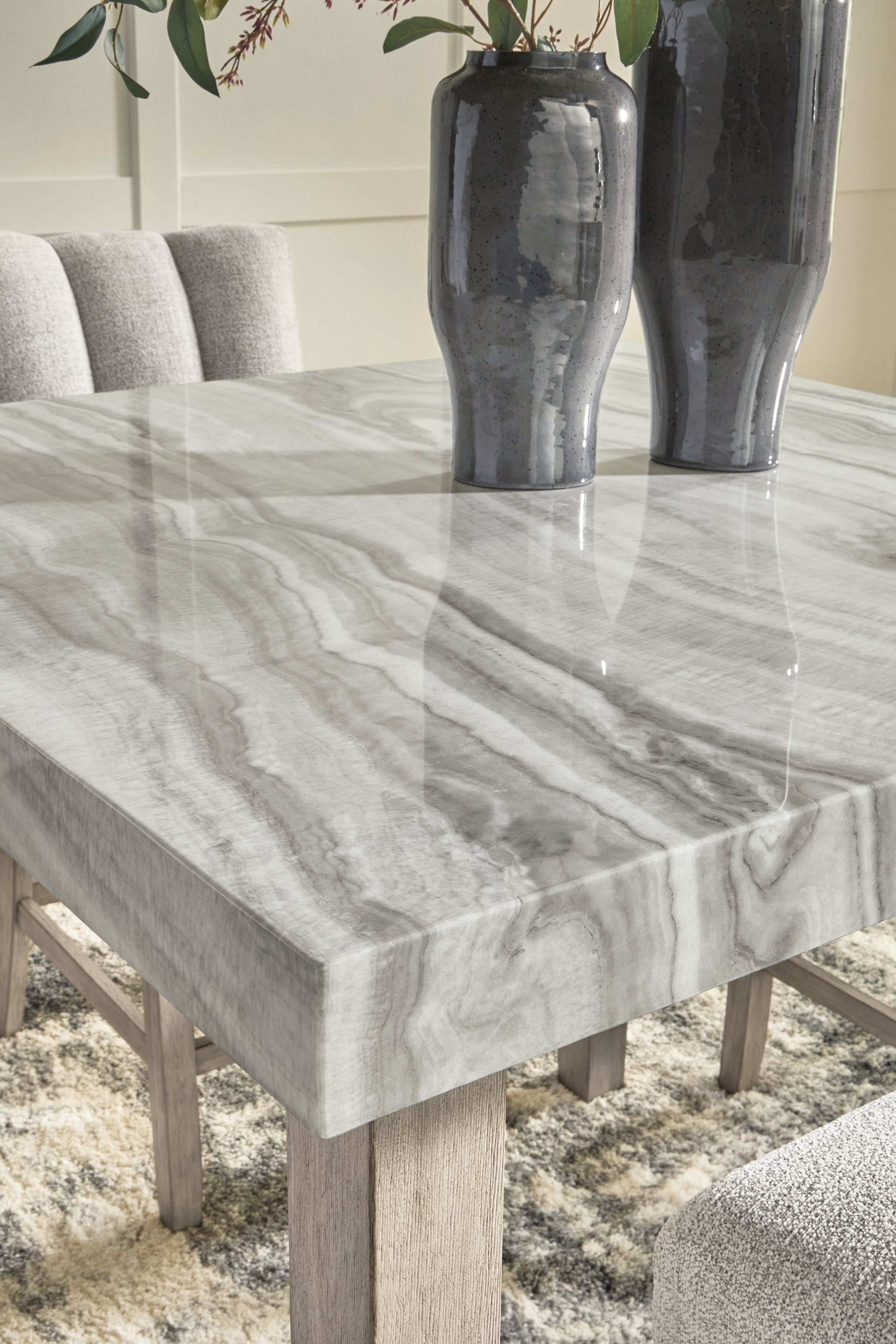 This dining table reflects your highly contemporary point of view. Its faux marble tabletop is a feast for the senses—white contrasts with the light and dark gray veining to create an authentic feel. With room to seat six people in sleek style, this table is a delicious choice for an elegantly elevated dining nook.
