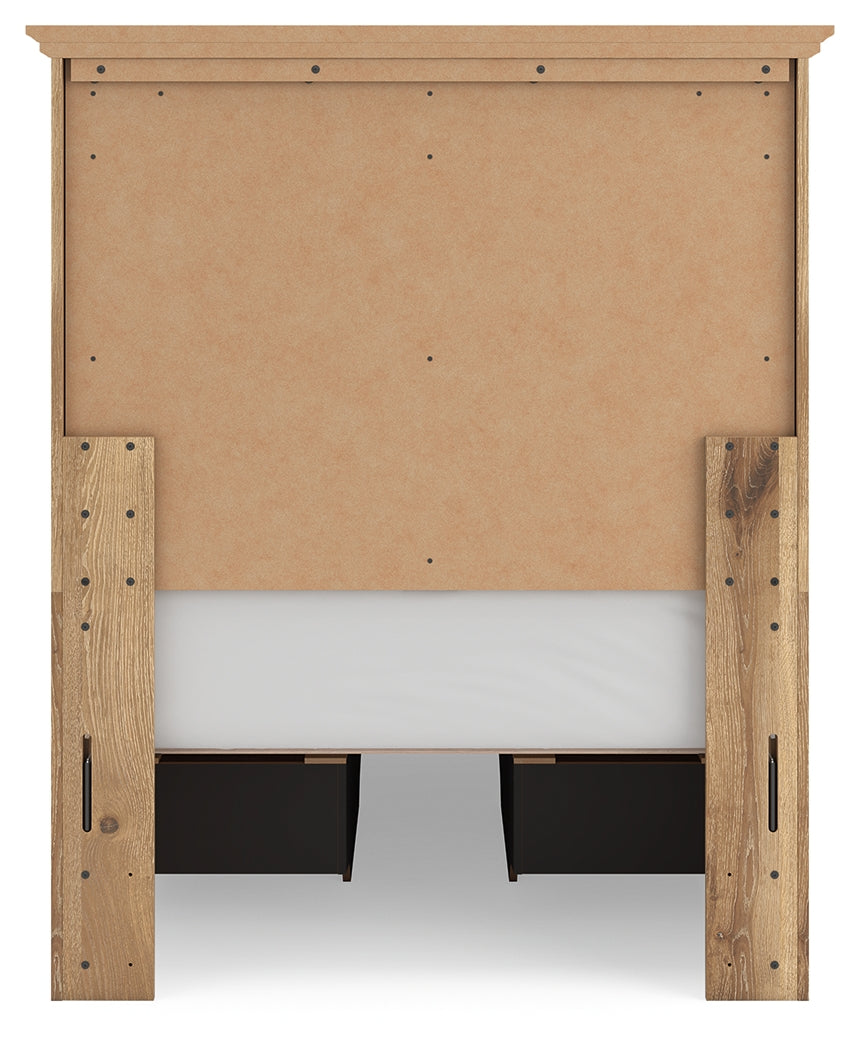 Looking to create a bedroom that feels airy and beautifully put together? This casually comfy full panel storage bed is your perfect solution. Its clean lines, replicated oak grain and on-trend natural finish exude a charming cottage-inspired feel that brightens your restful retreat. Spacious drawers with dark bronze-tone knobs stow away clothes and more. Now there’s a fresh take on country living we can get behind.