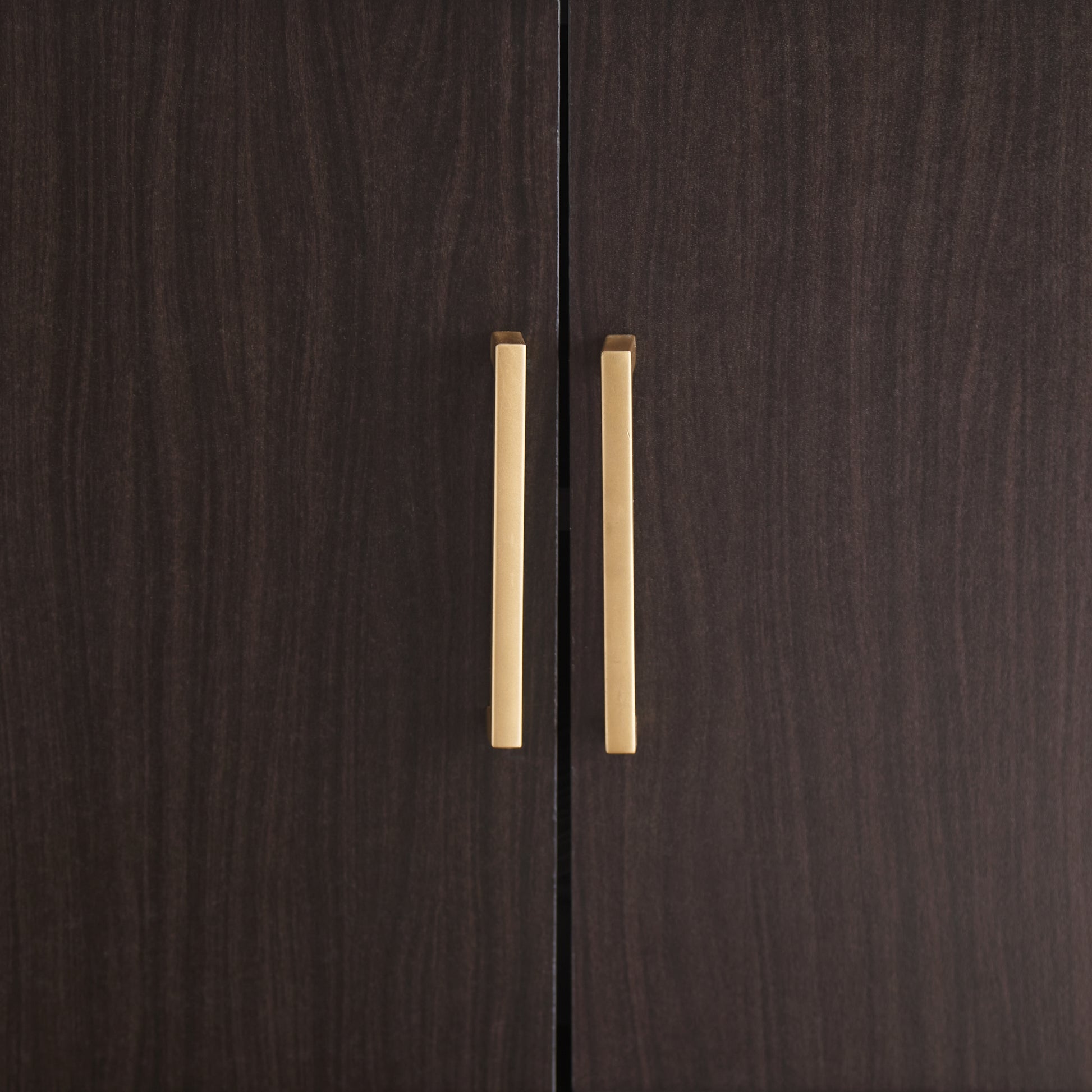 Open the door to clean-lined form and functionality with this accent cabinet. Its homey natural finish is enhanced with crisp white doors and pulls. Adjustable shelf caters to your needs.