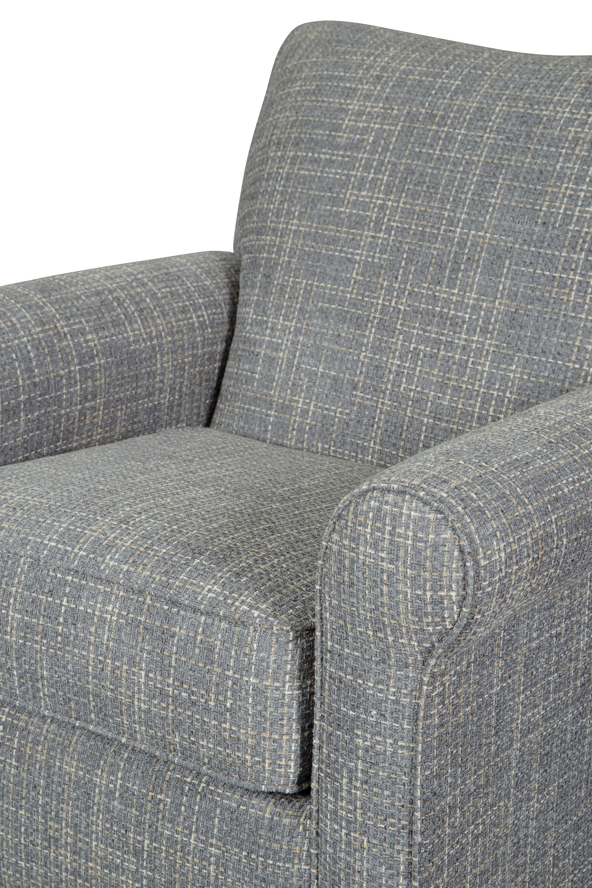 Sporting a tantalizing tweed weave fabric in such a soothing blue hue, this swivel glider accent chair gives the classic roll arm chair a modern twist. Smooth, 360-degree swivel caters to your comfort—and your viewing pleasure. Gentle glider feature is designed to rock your cares away.
