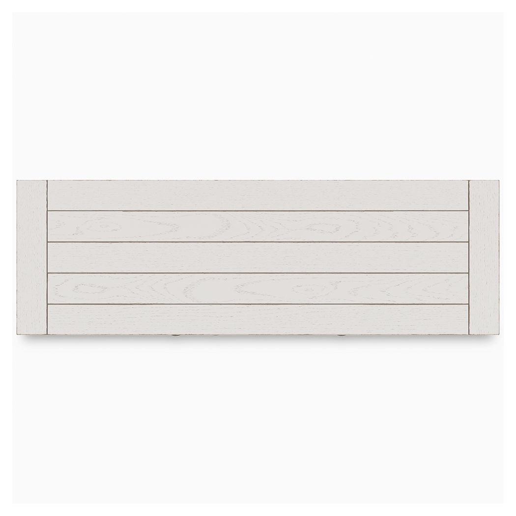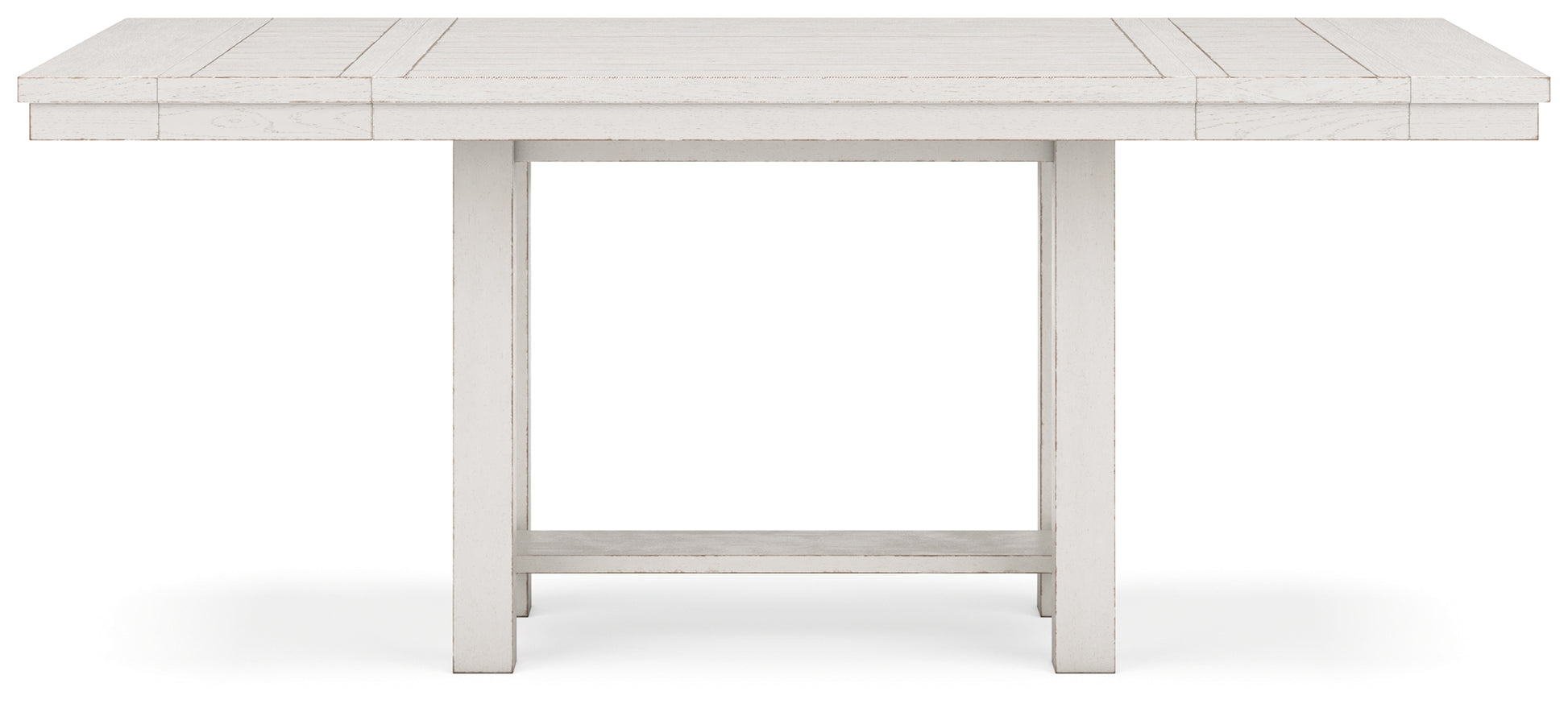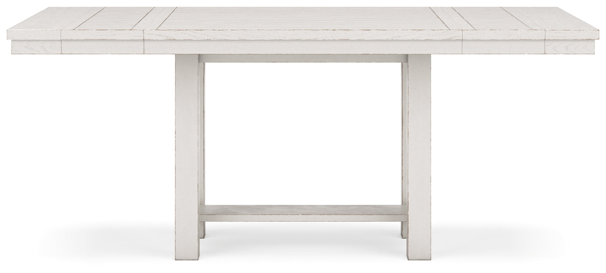 This dining package is sure to impress come mealtime. With its antiqued white finish and a planked effect tabletop, farmhouse-style dining has never been so fashionable. All that’s missing is you and your family.