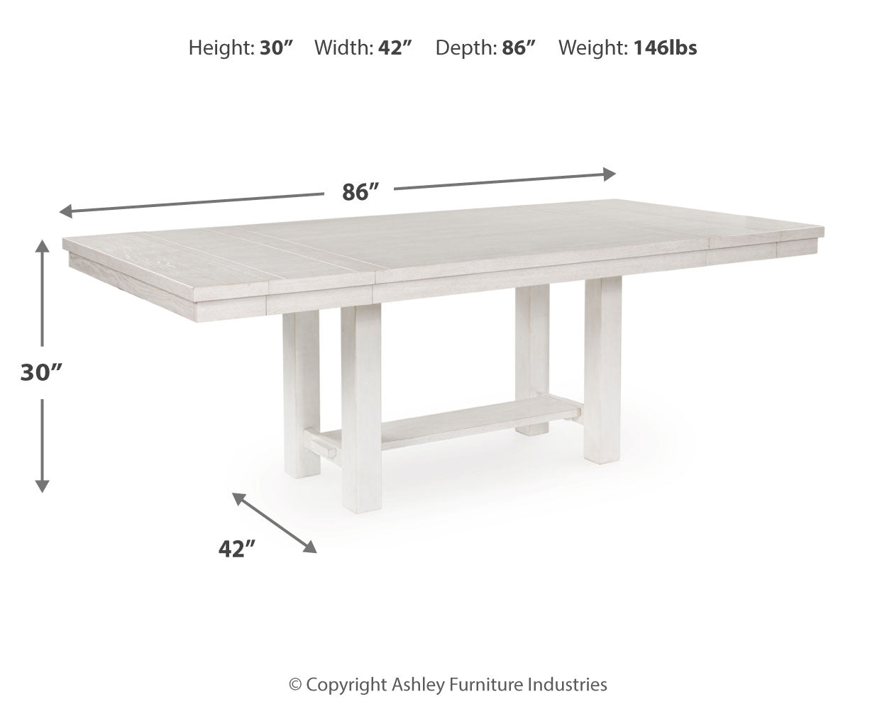 | RECT Dining Room EXT Table | 42" | 86" | 30" |