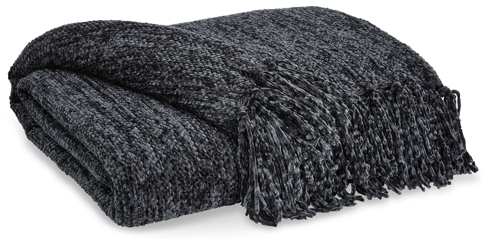 A lovely layer to cozy up with, this black throw blanket also makes a stylish statement. Whether draped over the arm of a sofa or folded at the foot of a bed, the woven texture and knotted fringe give it a homespun look that's relaxed and inviting.