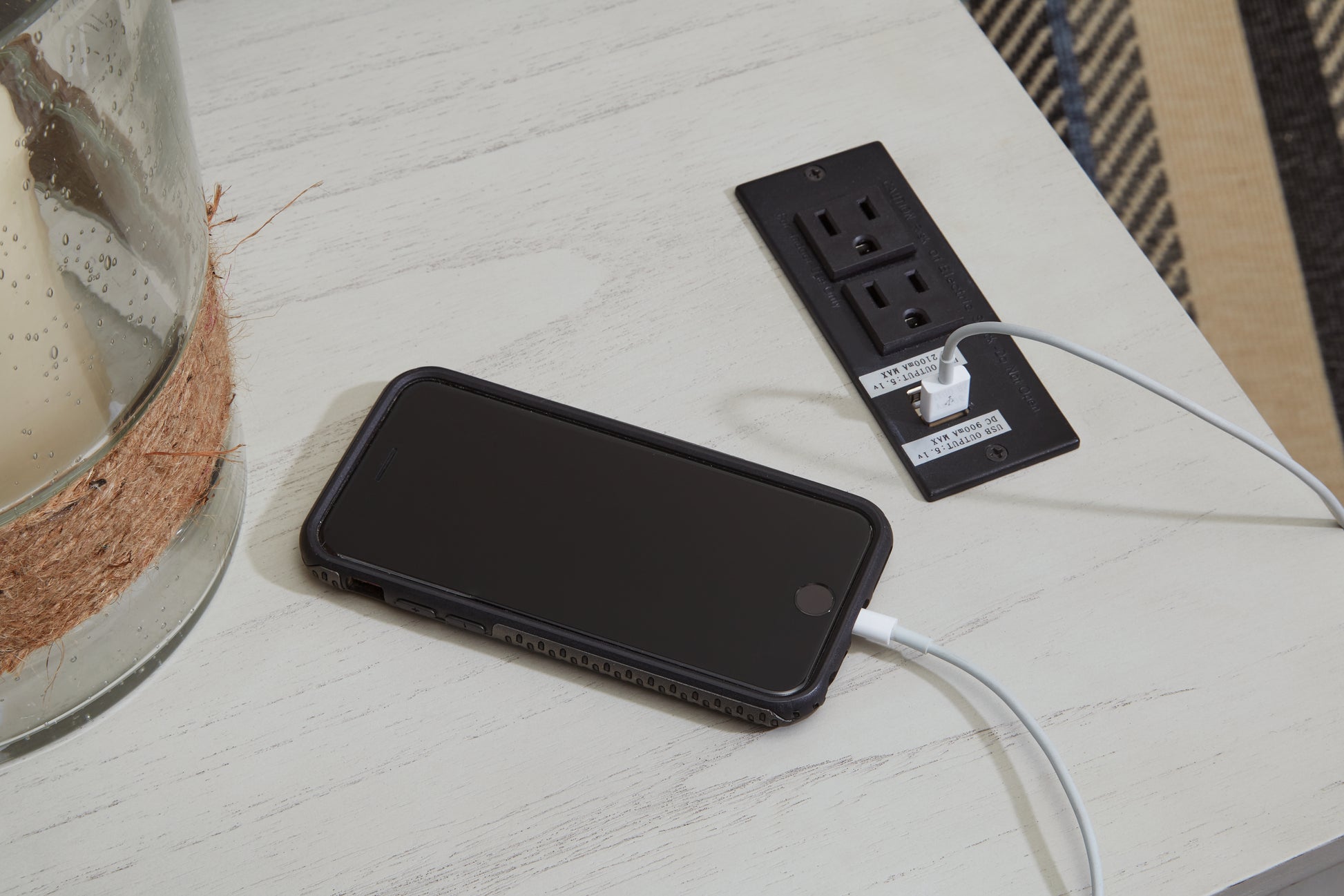 - 110V power supply with dual USB charging ports