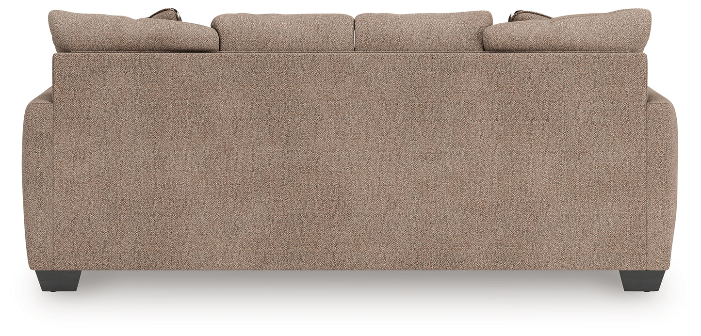 Transitional and right on trend. This sofa’s upholstery is a delightful change from the ordinary, with hints of soft brown giving the gray hue added depth. It’s punctuated with chic accent pillows in an eye-catching, stylized stripe design. Whether you're hosting friends and family or relaxing solo, this sofa invites homey, comfortable character into your space.