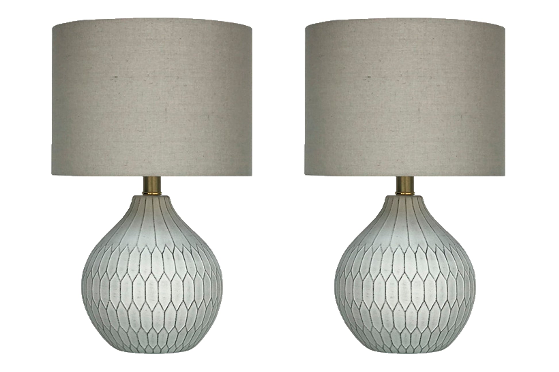 Fresh and light, the dimensional design of this delightful ceramic table lamp set borrows from a retro theme to update a transitional space. Made of ceramic with an antiqued white finish, these accent lamps infuse personality into any setting. Add them to a console or end table and bring out the bright in any decor.
